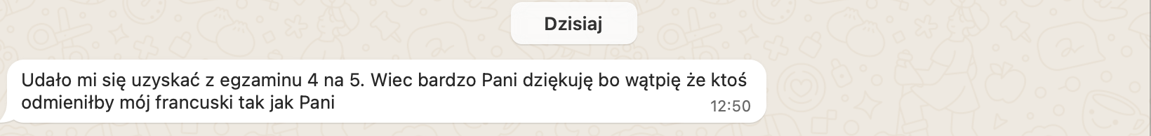 Taki sms dzisiaj otrzymałam od mojego ucznia. W czerwcu nie dopuszczono go do egzaminu na koniec semestru. Od lipca do wczoraj pracowaliśmy razem, 2 godziny w tygodniu. Dużo się uczył i wczoraj byłam spokojna, że egzamin zda. Dzisiaj są efekty. Bardzo się cieszę 🙂